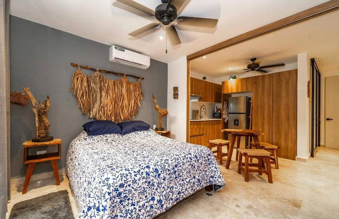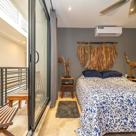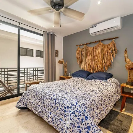King Suite With Private Balcony, Gym And Rooftop Pool Tulum Pueblo villa verleidt actieve gasten met toegang tot een wellnesscentrum en ligt binnen 10-minuten rijafstand van het Maya Ruïnes van Tulum. Dit vakantiehuis bevindt zich in de Zama wijk en biedt een privézwembad om bij te ontspannen.